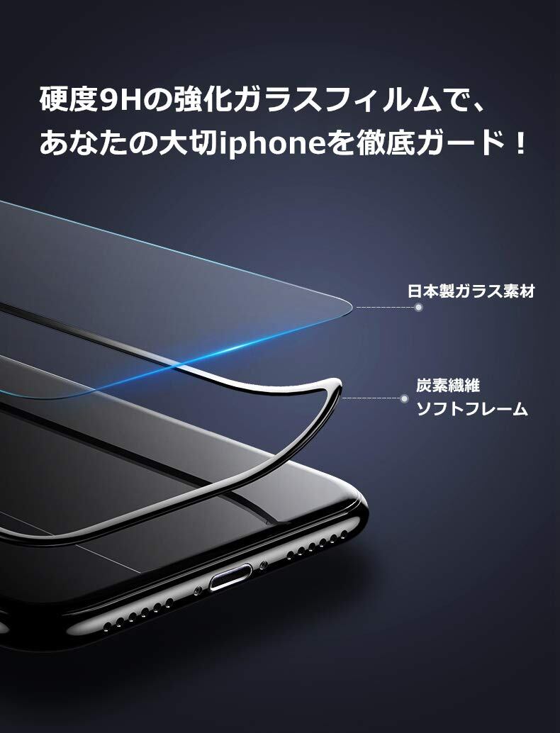 【硬度9Hと炭素繊維】硬度9H強化ガラスフィルムと炭素繊維層の組み合わせ、エッジ部分に柔軟で丈夫な炭素繊維素材を採用した為、落下や衝撃による端欠けを防ぎ、保護機能を更に強化させます!