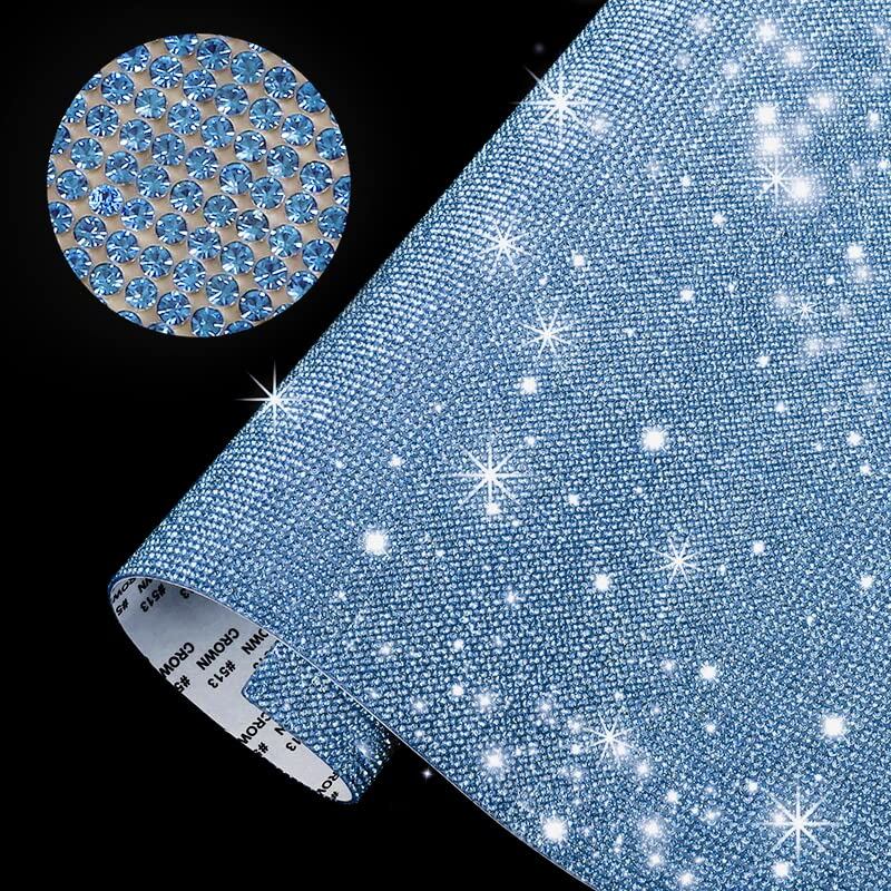 ORBIDO ラインストーン シール [12×20㎝]2枚入り デコシール 自己粘着ラインストーンシール 修正工芸品 電話 衣類 車 スマホ DIY スワロフスキー シール クリスタル キラキラシール 熱接着タイプ ライトブルー