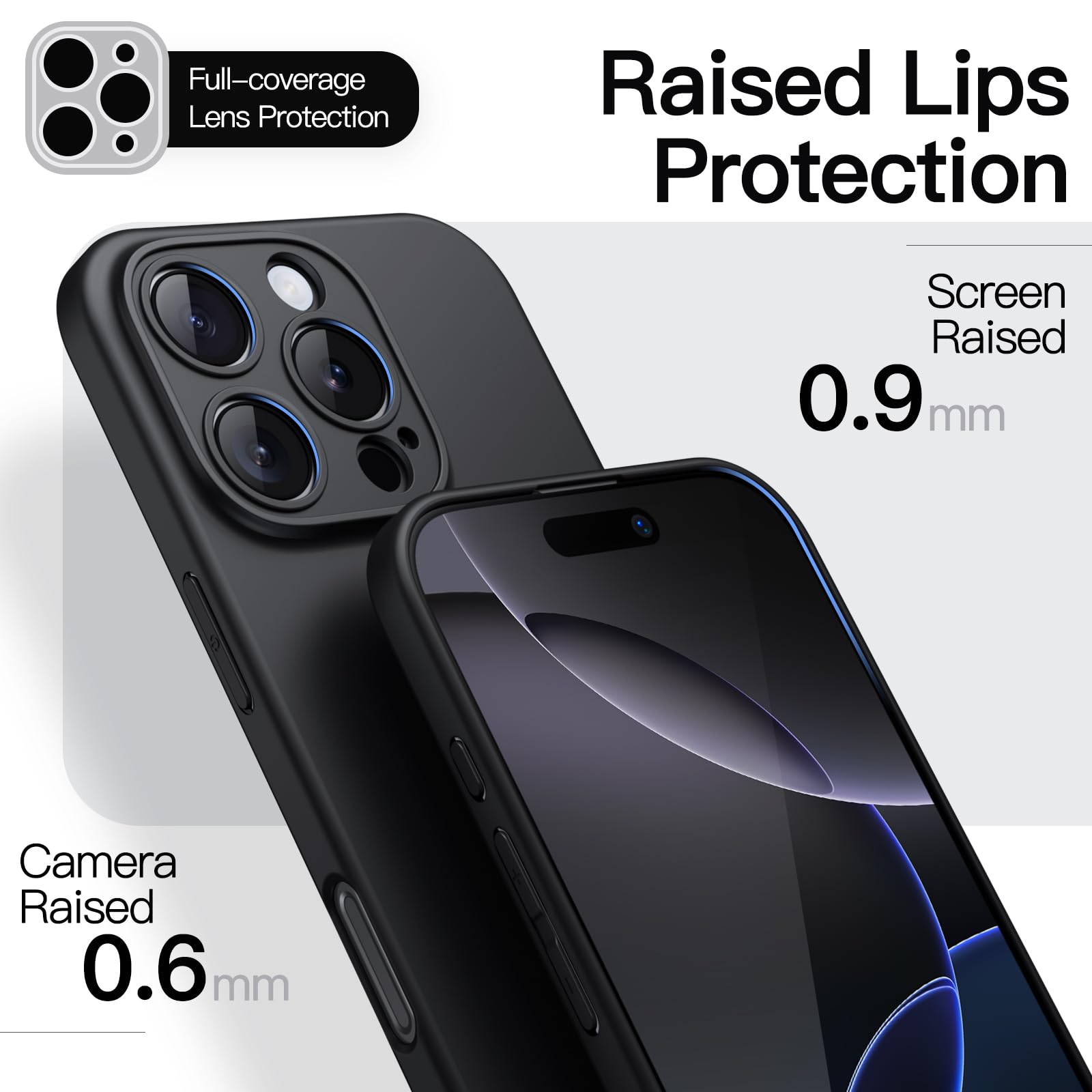 [強化されたカメラ保護] 各カメラレンズに完璧にフィットするカットアウトデザインで、全面的な保護を実現。画面とカメラ周りの隆起したエッジがさらなる保護を提供します