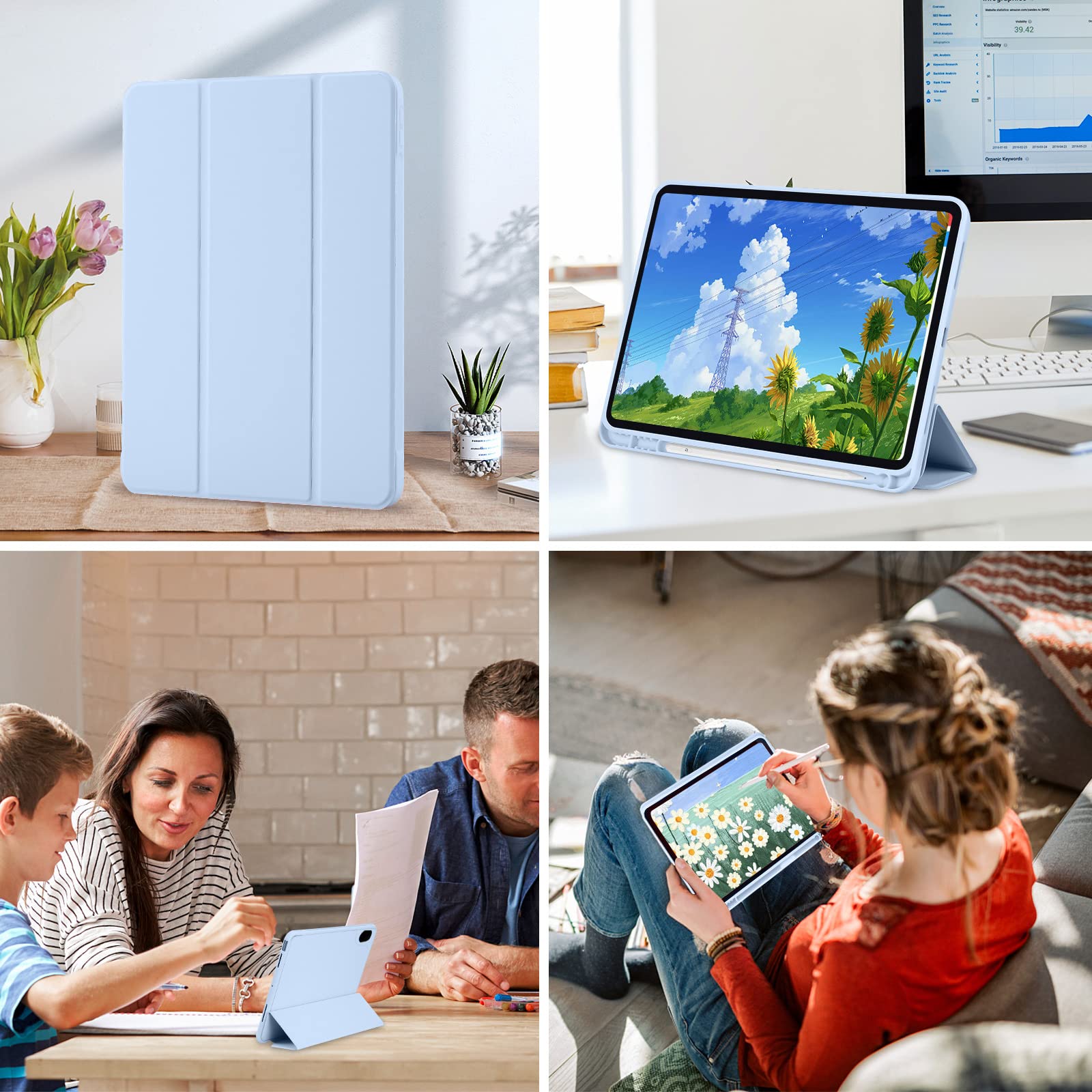 iPad a16 ケース 2025モデル 対応 iPad 11世代 10世代 ケース 11/10.9インチ 三つ折りスタンド ペンシル収納ホルダー付き 軽量 薄型 耐衝撃 オートスリープ機能 スカイブルー