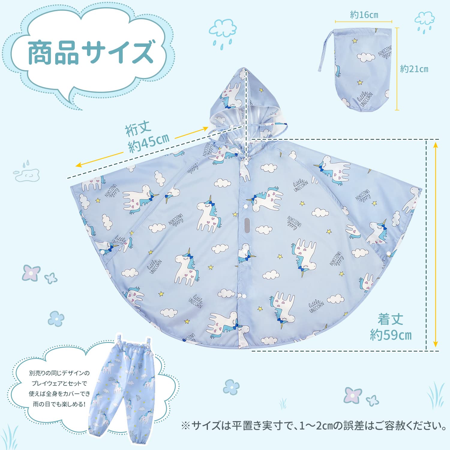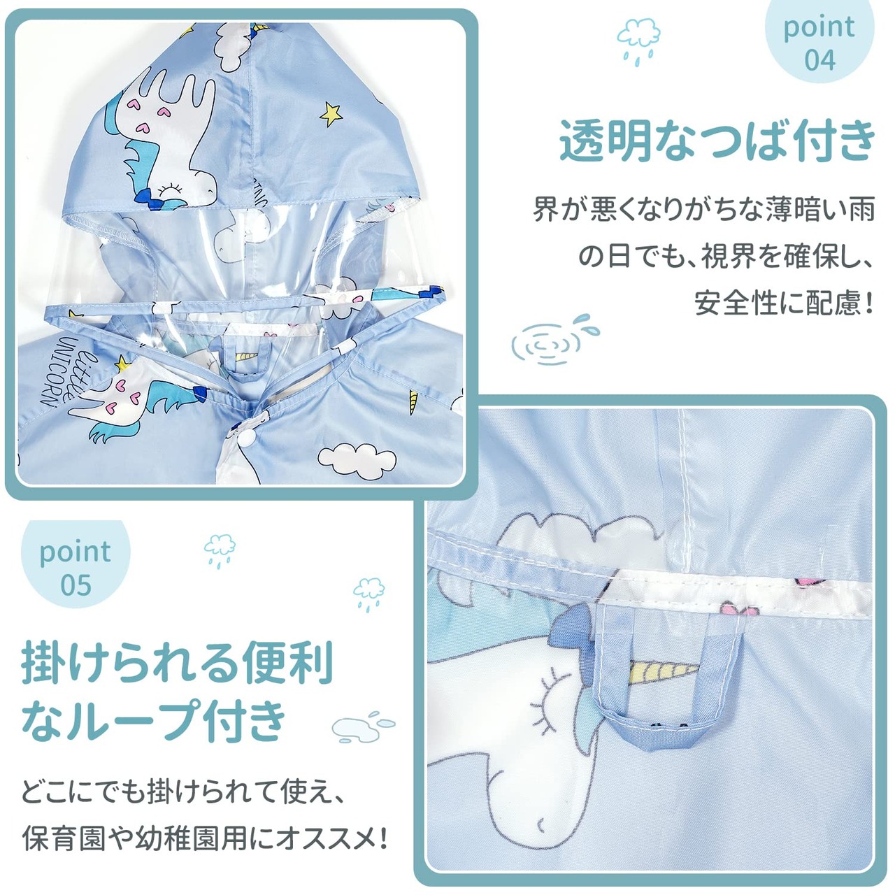 [Litchii Guusii] レインポンチョ レインコート キッズ 恐竜 撥水 子供 ランドセル対応 かわいい おしゃれ 雨具 レインウェア 男の子 女の子 収納バッグ付き カッパ ポンチョ 透明窓付き 反射テープ付き 通園 通学 アウトドア