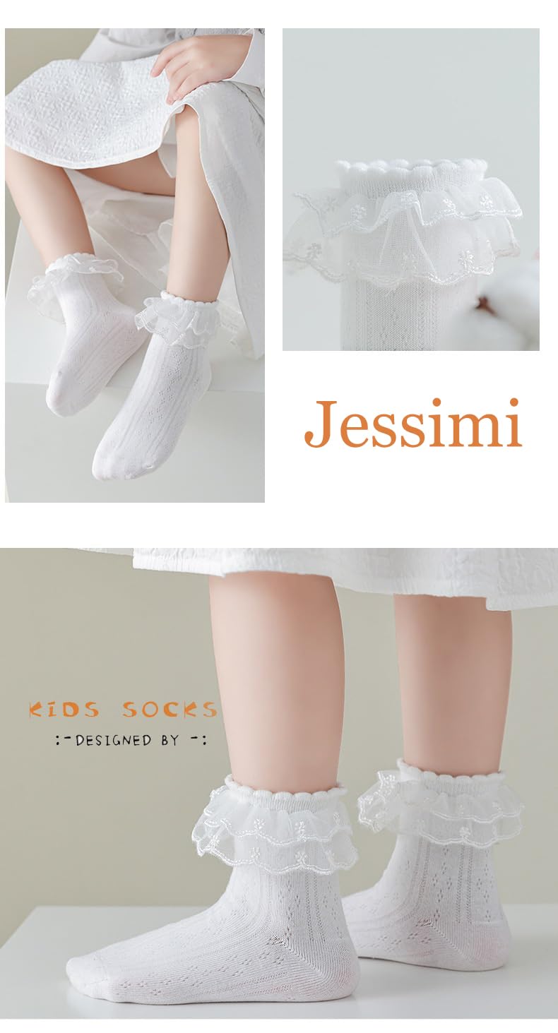 [Jessimi] 靴下 2足セット ソックス 女の子 ショートソックス クルーソックス キッズ 子供 フォーマル レース 白 黒 発表会 入学式 ドレス服用 入園式 入学式