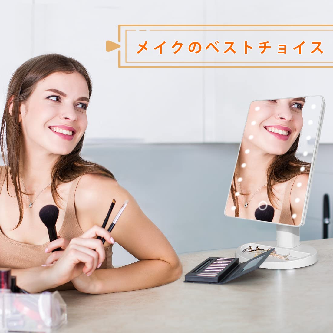 Vidafelic 化粧鏡 卓上 化粧ミラー 鏡 明るさ調節可能 180°回転 電池&USB 2WAY給電 卓上 女優ミラー