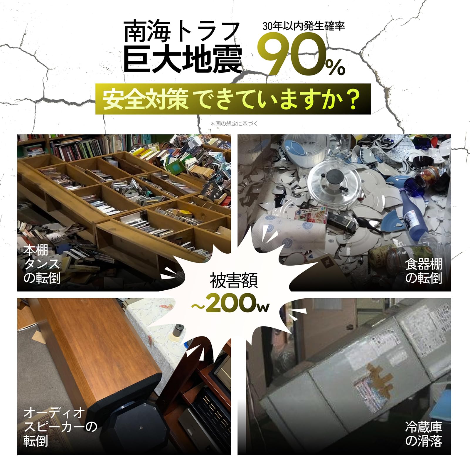 【強力耐震】1000ガルの耐震試験をクリアしており、震度7クラスの大地震にも対応可能。2枚で耐荷重200kg以上トップレベルの耐荷重。