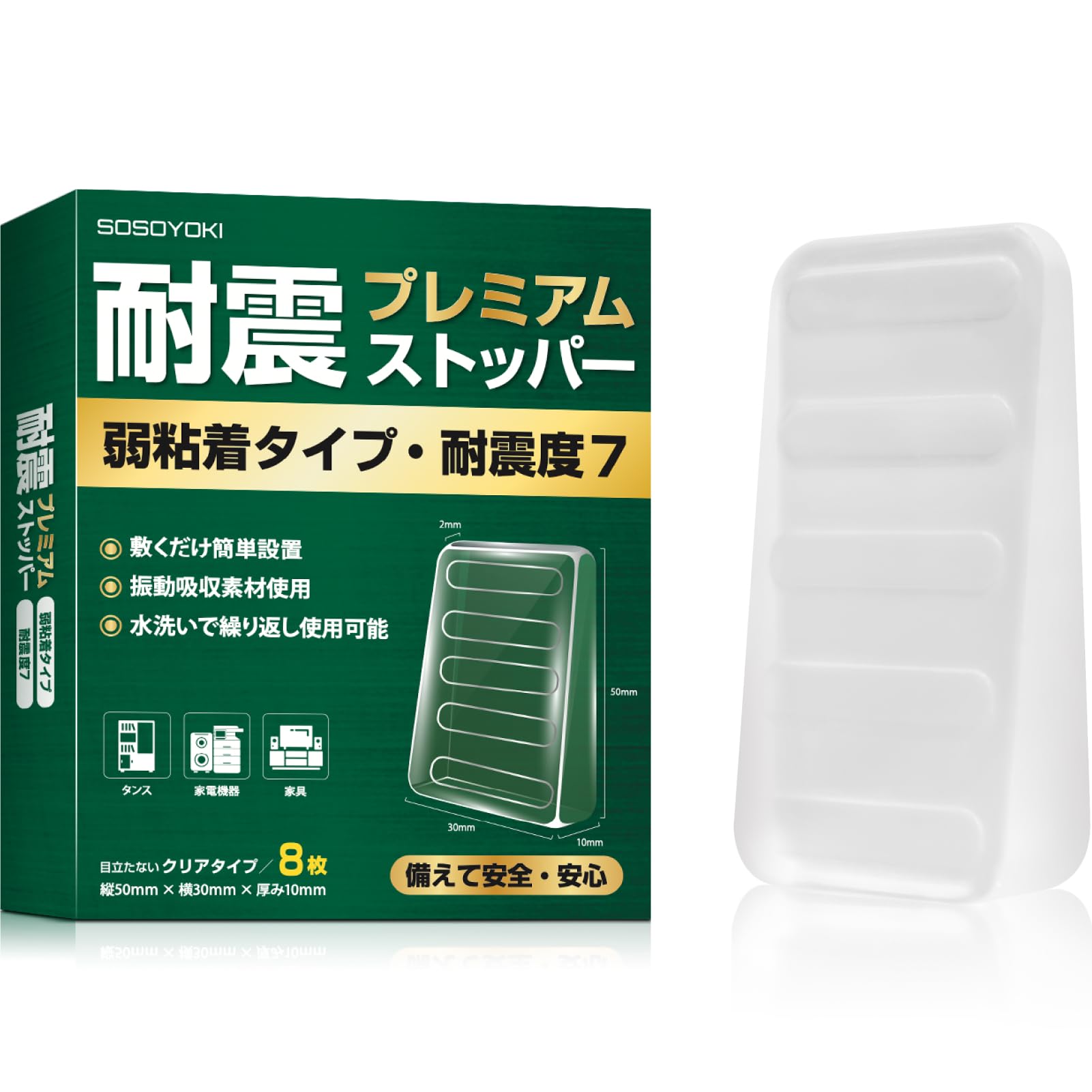 【特価】SOSOYOKI 耐震ストッパー 弱粘着タイプ 耐震マット 耐震度7対応 地震 転倒防止 耐荷重200kg 振動吸収 粘着固定 繰り返し使用可能 強力滑り止めパッド 簡単取り付け (クリア8枚) | GIGATERA