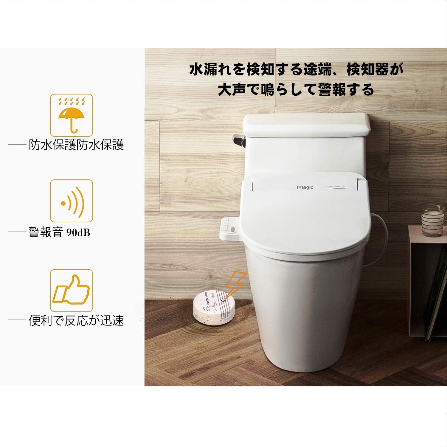 【新着】Housolution 漏水検知器 水漏れ報知器 水漏れセンサー 水オーバー 水位センサー 水位感知 水漏れ警報 水漏れ防止 漏水センサー 90db 無線 防災グッズ トイレ/風呂場適用 White | GIGATERA