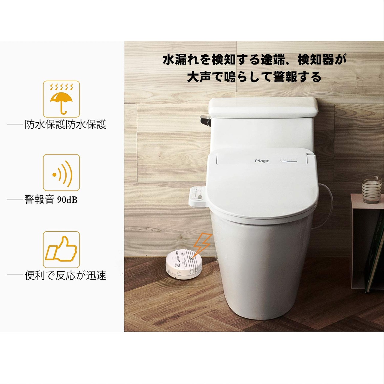 【ブザー音付き】音が高いブザー音が長い時間で鳴り続け、即に水漏れの状況を知らせることができます。