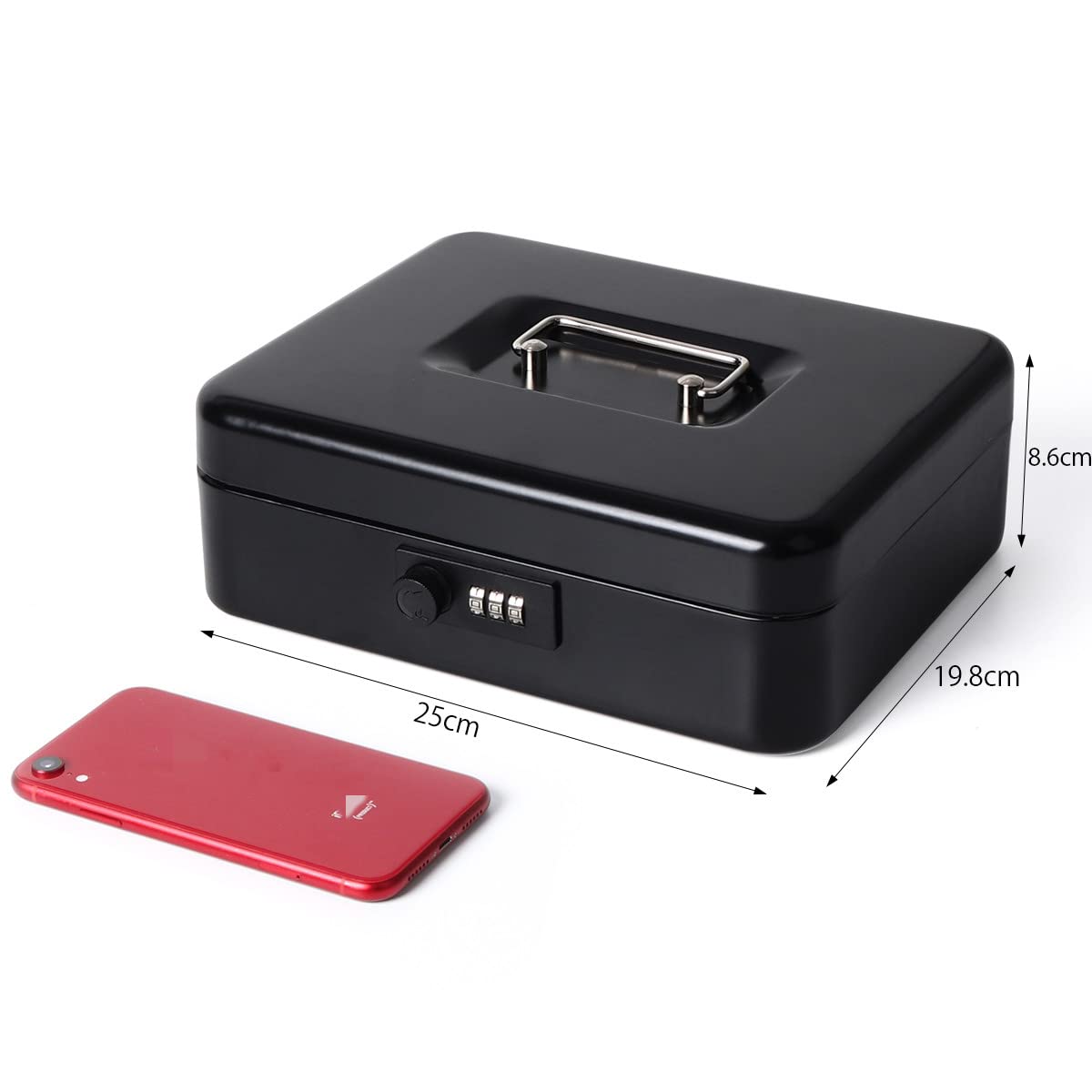 (トモリ)Tomori 金庫 ミニ金庫 手提金庫 ダイヤル式 金属製 ブラック 25x20x8.8cm (ブラック, M)