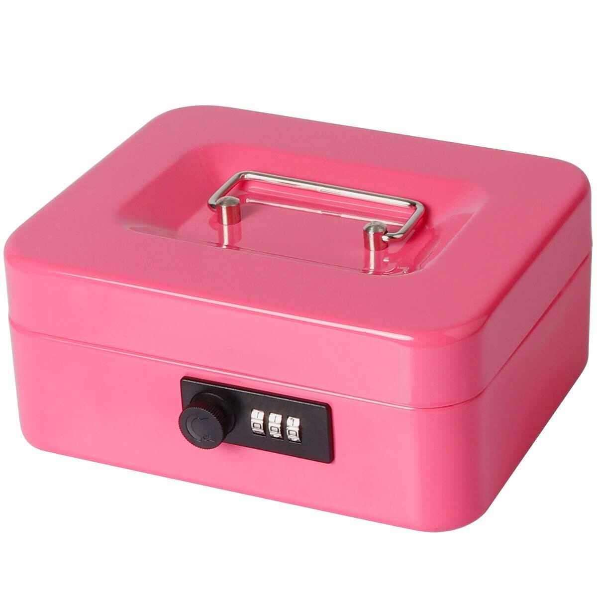 Lysmics 金庫 手提げ金庫 ダイヤル式 貯金箱 ミニ金庫 収納ボックス 家庭用 防犯 事務用品 (ピンク, S)