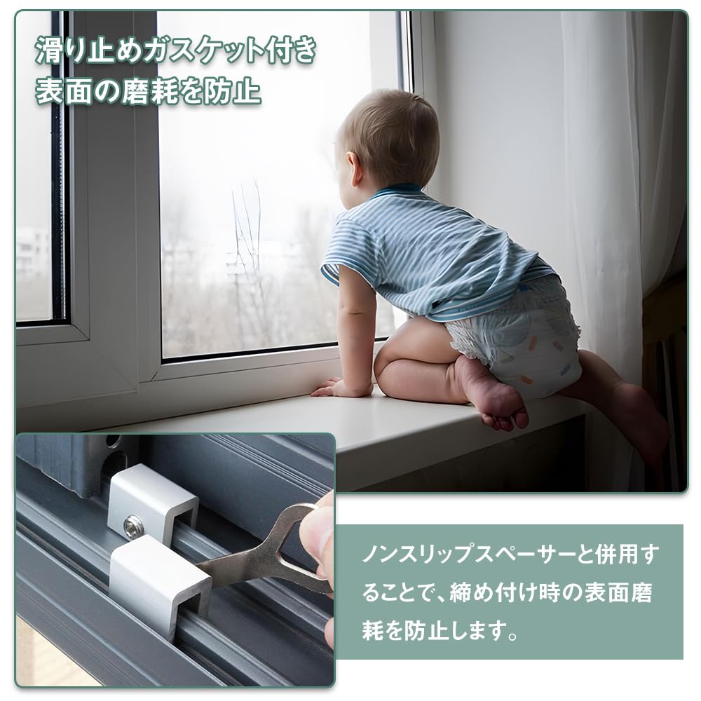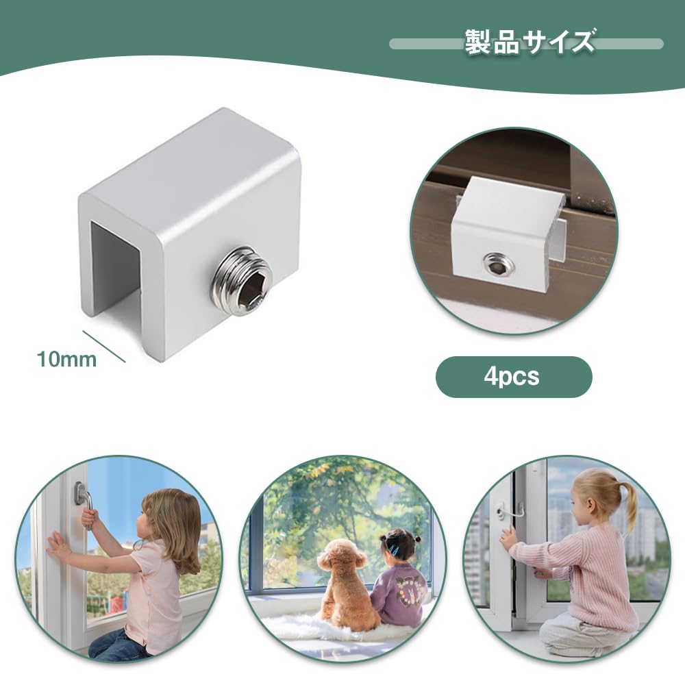 窓 ロック 網戸ストッパー ストッパ ロック 防犯 サッシ ストッパー 補助錠 ベランダ 窓 鍵 調整可能 シルバー 4個セット