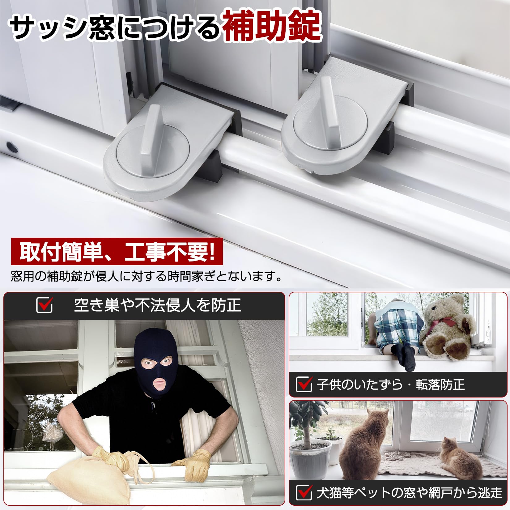 【多用途で実用的 ????】引き戸やベランダ窓、浴室の小窓、トイレ窓など多用途に対応。窓補助錠としての使い勝手が良く、賃貸住宅にも最適。サッシロックを上下2ヶ所で使うとさらに安心です。