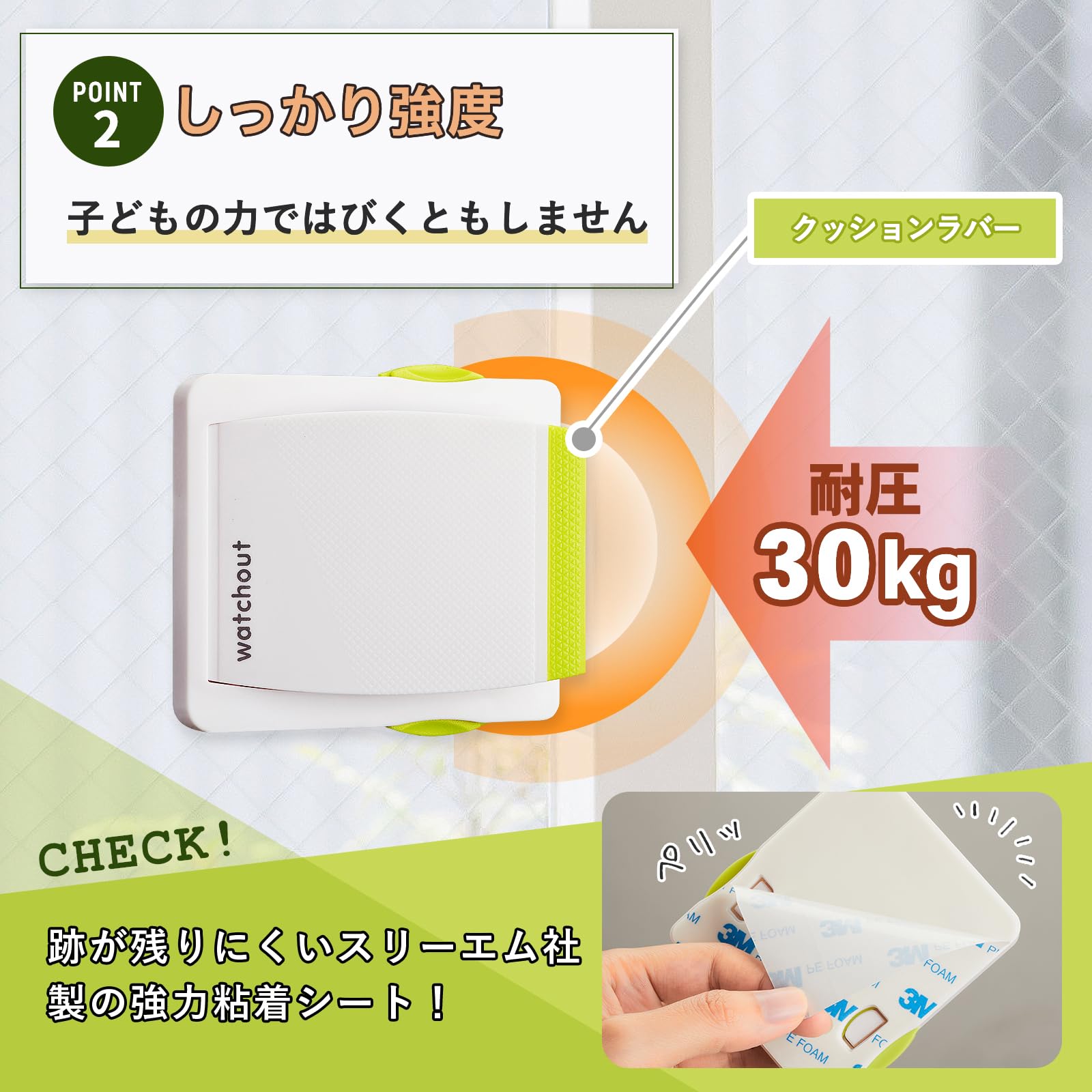 【在庫処分】【ワンタッチ強力ロック】 窓ロック チャイルドロック 防犯 [インテリアに馴染むおしゃれデザイン] ピタッと貼付け 事故防止 スライド窓 ストッパー (グリーン1個入り) | GIGATERA