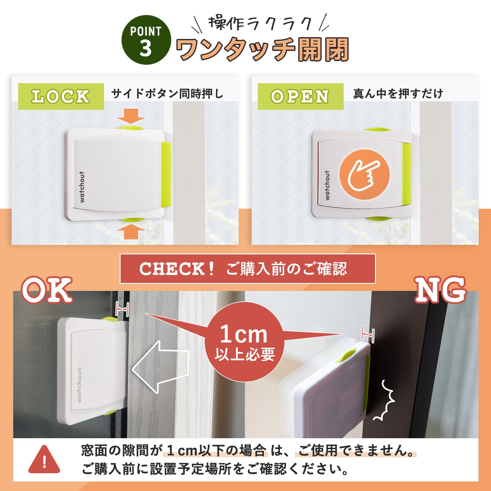 ワンタッチ開閉、しっかり強度、ピタッと貼り付けるだけの簡単操作で窓ぎわを安心空間へ。