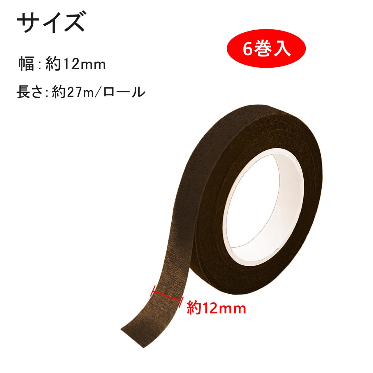 フローラテープ 茶色 6巻入 造花テープ フラワーテープ フラワーアレンジメントキット 花 製作 作り用テープ 花屋 ブーケ 花束 茎巻き用 DIY 手芸 材料 花材 アクセサリー ブラウン