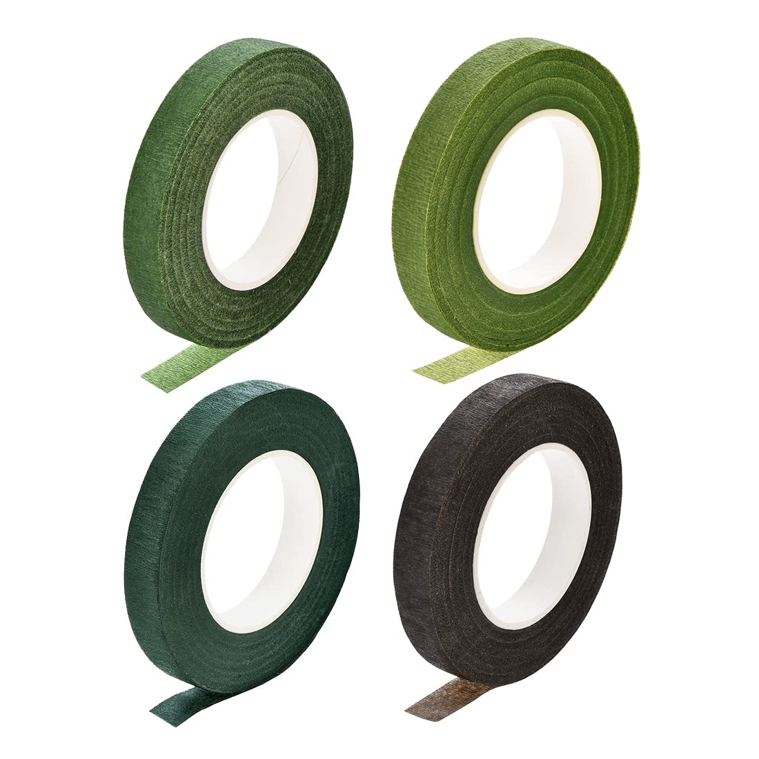 uxcell フローラルテープ 4ロール 12mm幅 30ヤード 花の接着剤 フラワーアレンジメントキット ダークグリーン、ライトグリーン、グリーン、ブラウン