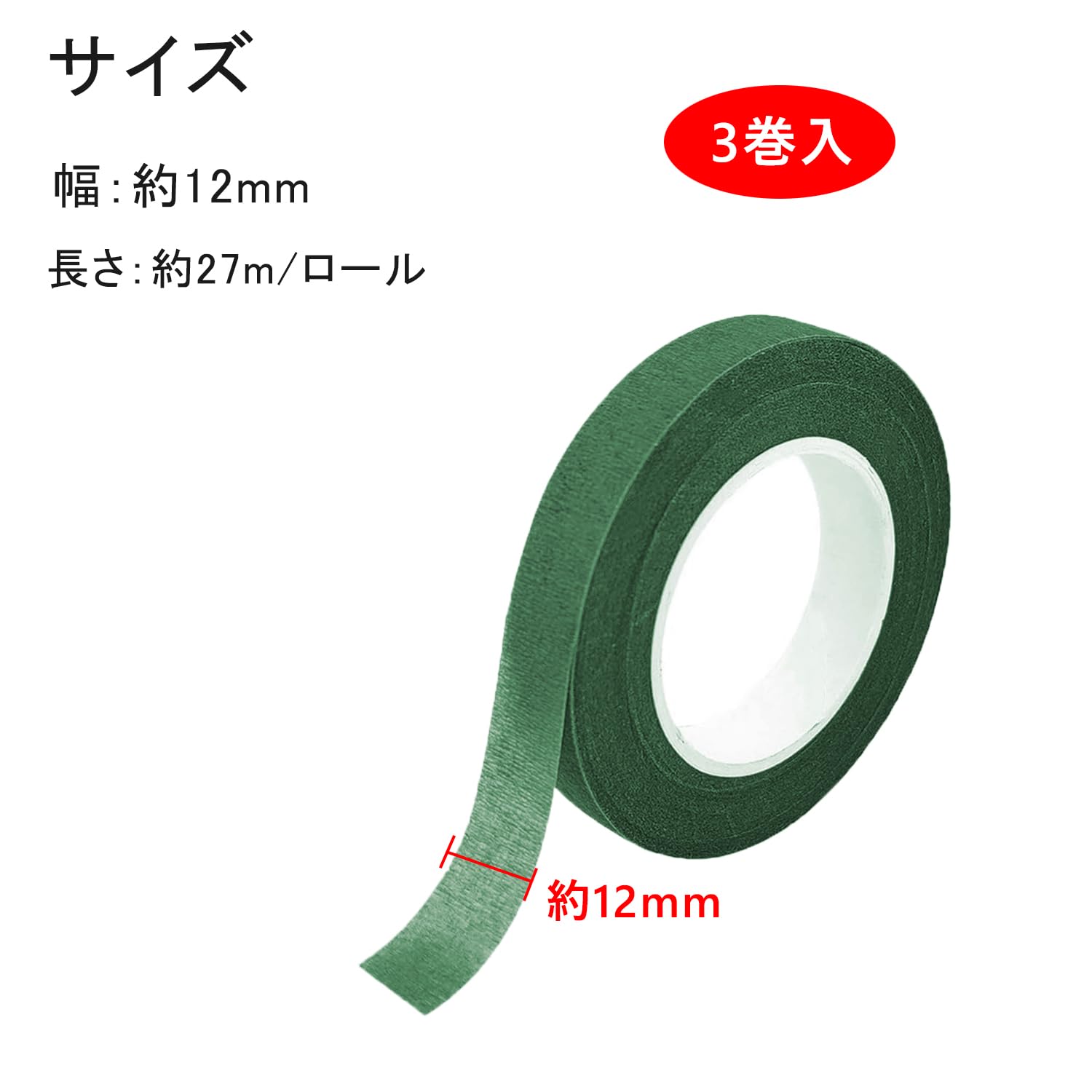 フローラテープ 緑 3巻入 造花テープ フラワーテープ フラワーアレンジメントキット 花 製作 作り用テープ 花屋 ブーケ 花束 茎巻き用 DIY 手芸 材料 花材 アクセサリー グリーン