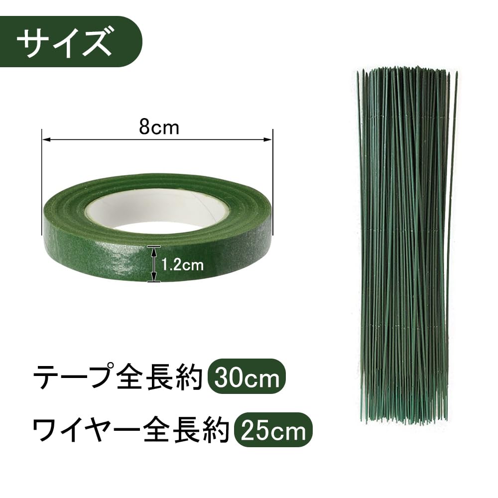 造花セット 地巻ワイヤー 50本入 フローラテープ 2巻入 ライトグリーン ダークグリーン 造花テープ フラワーアレンジメントキット DIY 手芸