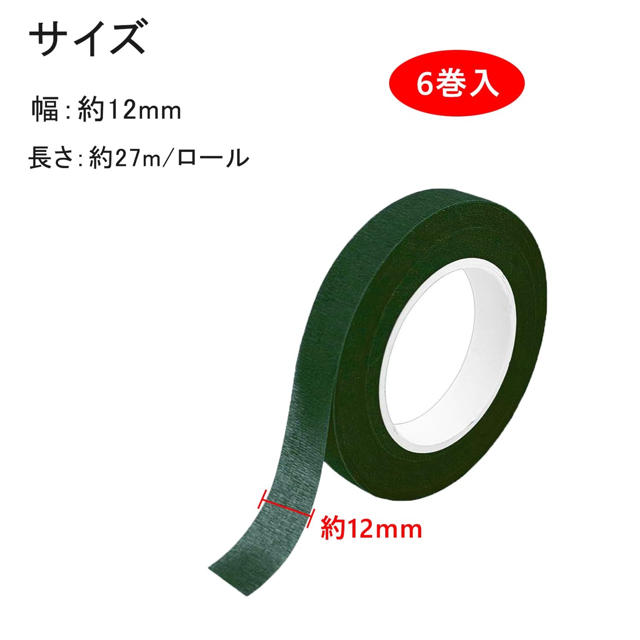 フローラテープ 濃い緑 6巻入 造花テープ フラワーテープ フラワーアレンジメントキット 花 製作 作り用テープ 花屋 ブーケ 花束 茎巻き用 DIY 手芸 材料 花材 アクセサリー ダークグリーン