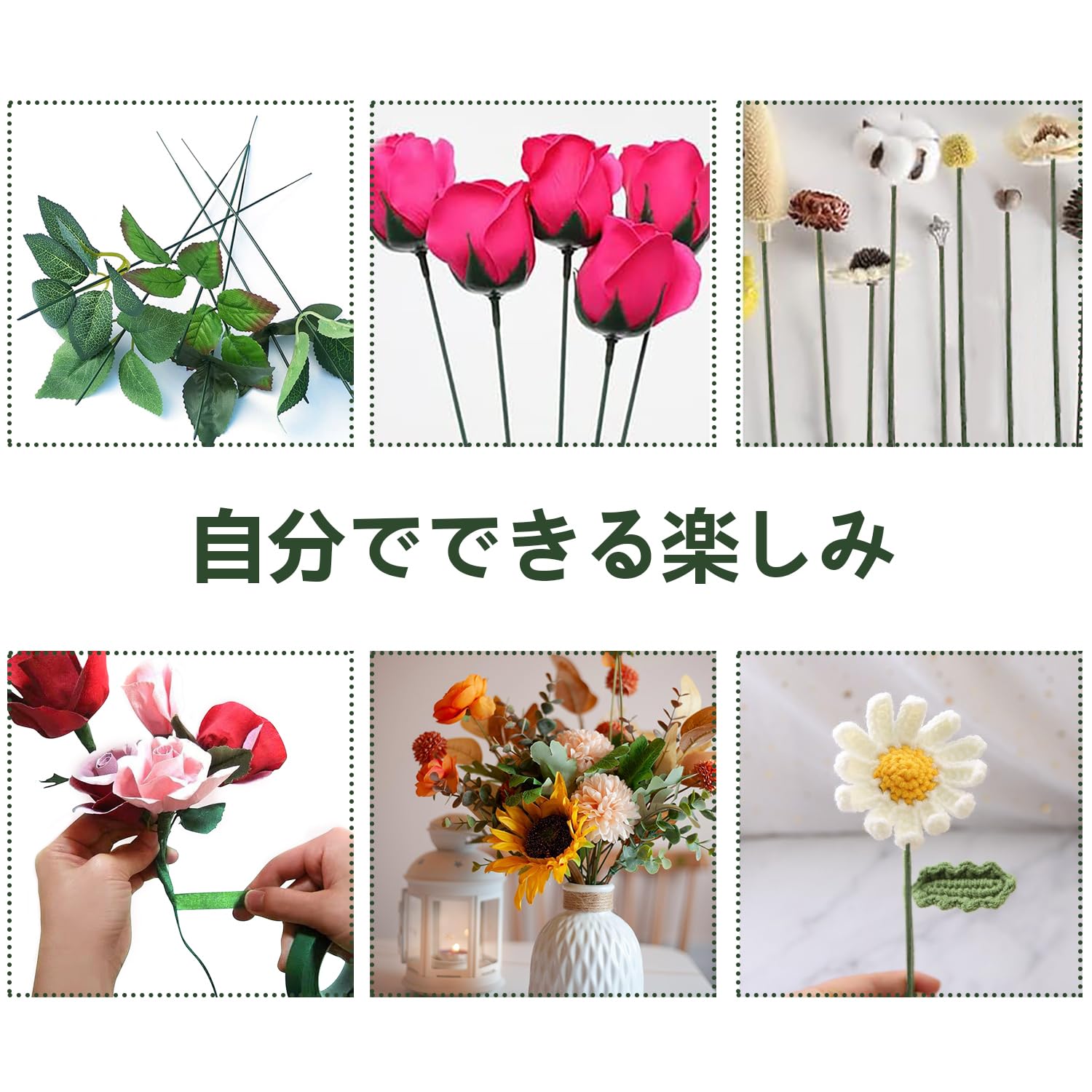 造花セット 50本入り フラワーワイヤー つまみ細工 ワイヤー 長さ20cm 直径2mm 地巻ワイヤー フローラテープ ラワーアレンジメントキット DIY 手芸