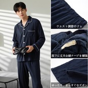 【優れた綿100%パジャマ】柔らかい綿100%のダブルガーゼ素材を使用しているメンズパジャマです。軽く、やわらかく、ふんわり。洗うほどに柔らかくなって肌に馴染んでいきます。ダブルガーゼは真ん中に空気層を作るので、程よい保温性を実現しています。
