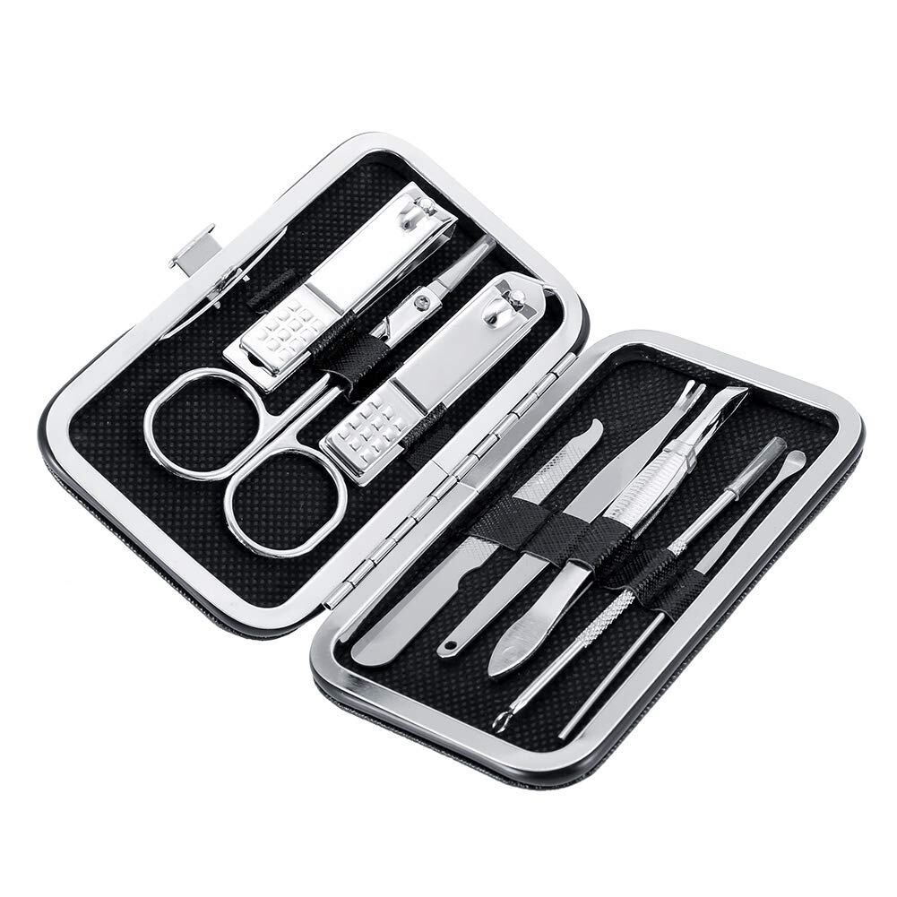 【特価在庫】ネイルクリップセット エチケットセット 身だしなみセット 爪切り ハサミ ピンセット グルーミングキット 携帯便利 収納ケース付き ステンレス製 8本セット ブラック | GIGATERA