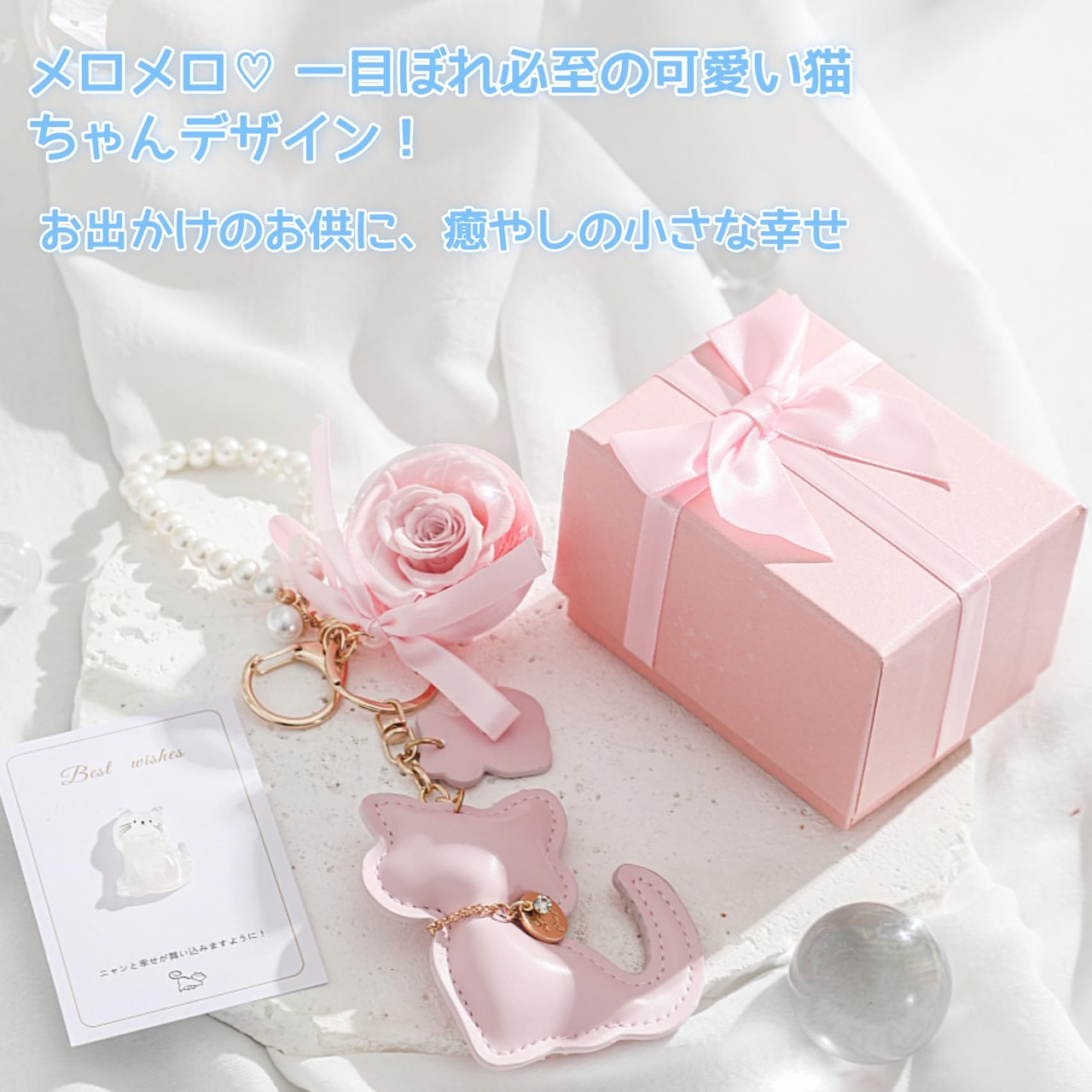 【数量限】プリザーブドフラワー キーホルダーレディースキーホルダーアップグレード ペンダント Cat ねこ母の日プレゼント ホワイト デープレ枯れない花 誕生日プレゼント女性人気 かわいい 母 敬老の日 彼女 女性友達 娘 ギフト バレンタイン 記念日 結婚祝い 引越し祝い 入学 卒業 退職祝 バラ ひな祭り エターナルフラワー (ピンク 猫) | GIGATERA