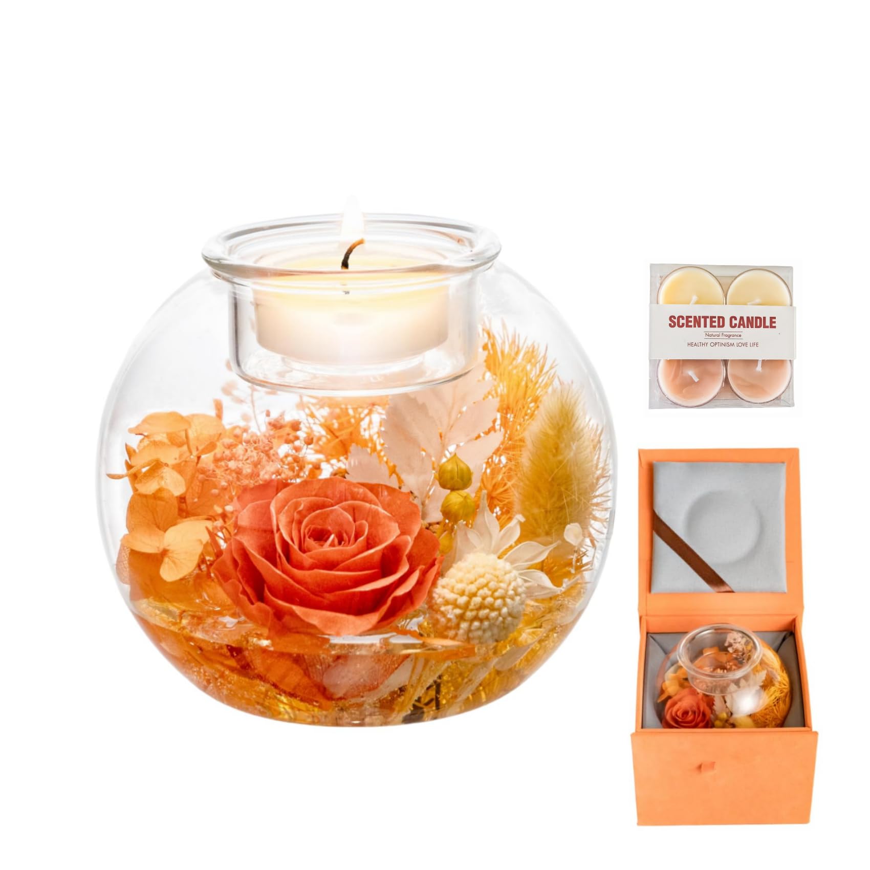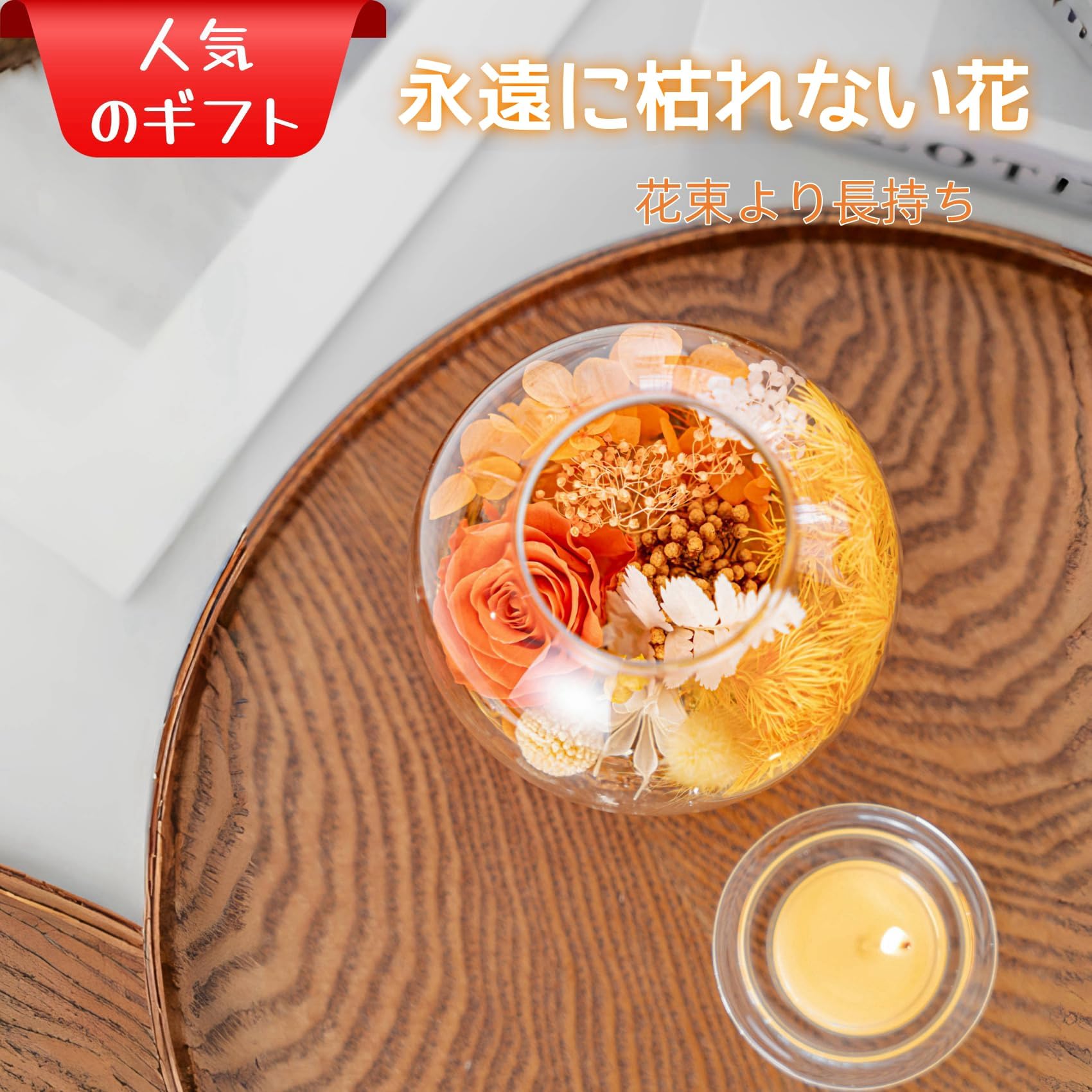 プリザーブドフラワーギフト キャンドルホルダー 枯れない花 誕生日プレゼント女性 ゼント人気 お母さんに贈り物 ギフト女友達 ボーイフレンド 彼女 母 かわいい 記念日 誕生日 還暦祝い 退職祝い バラ ギフト引越し祝い 入学 卒業 結婚祝い 敬老の日家庭装飾 雰囲気作り (オレンジ (キャンドルセット付属))