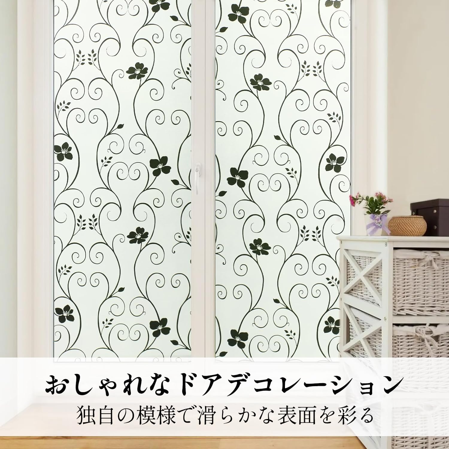 【特価在庫】DUOFIRE 窓ガラス目隠しフィルム 目隠しシート 窓用フィルム すりガラス調 断熱 遮光 飛散防止 uvカット 結露防止 水で貼る 貼り直し可能 浴室/風呂/玄関に適用 (黒花柄 44.3x200cm) | GIGATERA