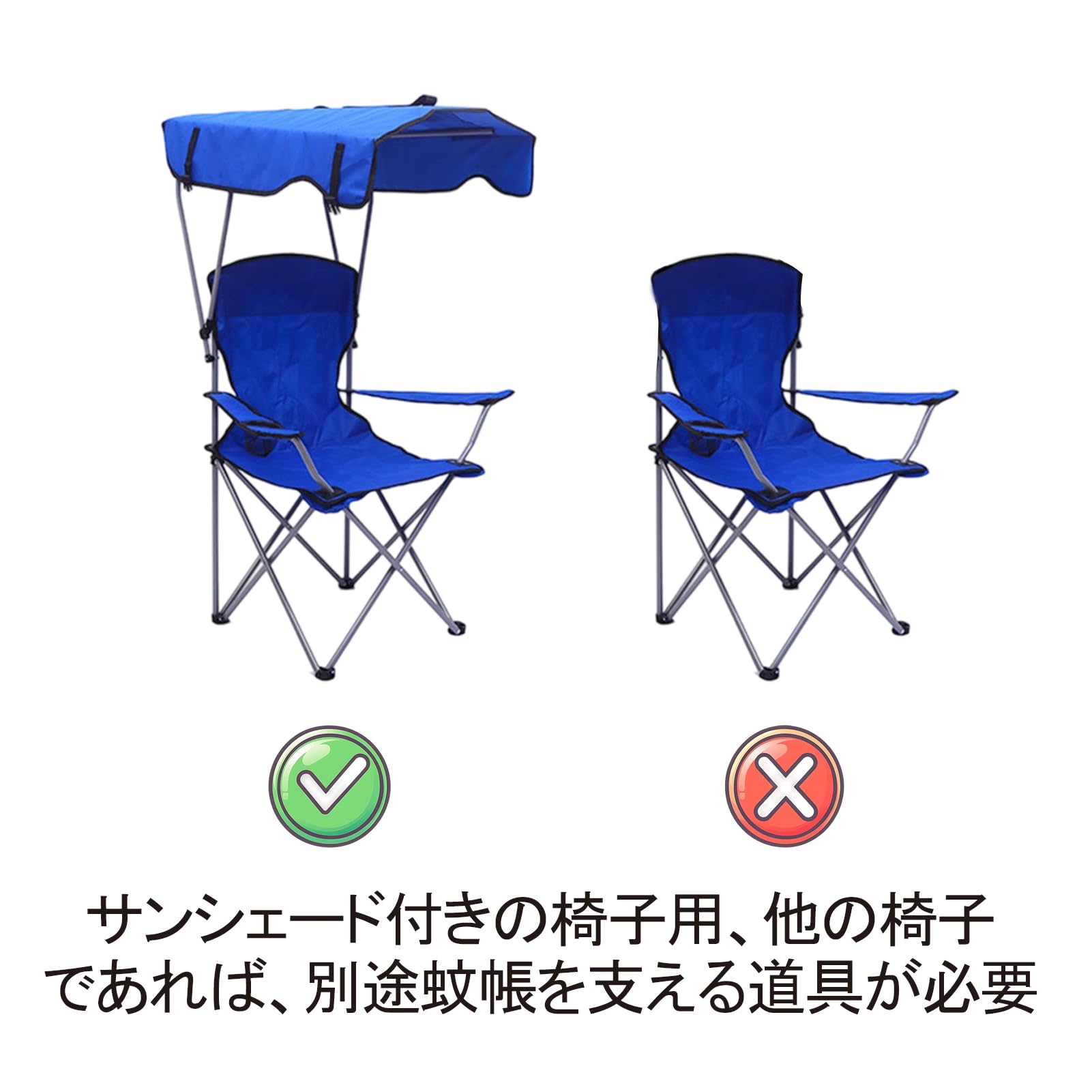 サンシェード付きの椅子用、他の椅子であれば、別途蚊帳を支える道具が必要