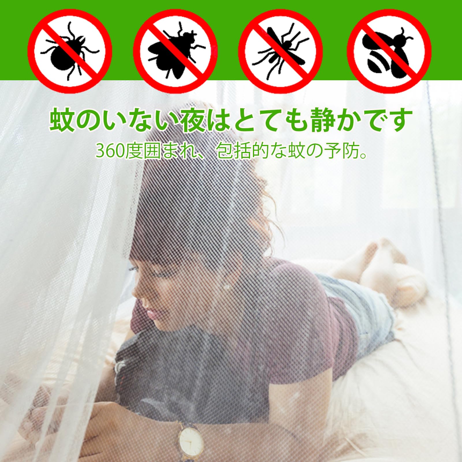 【高品質の素材】蚊帳は高品質のポリエステル製で、生地はしっかりと織られており、通気性に優れています。小さなメッシュデザインにより優れた保護がされ、小さな蚊も侵入できず、刺されやかゆみから肌を守ります。