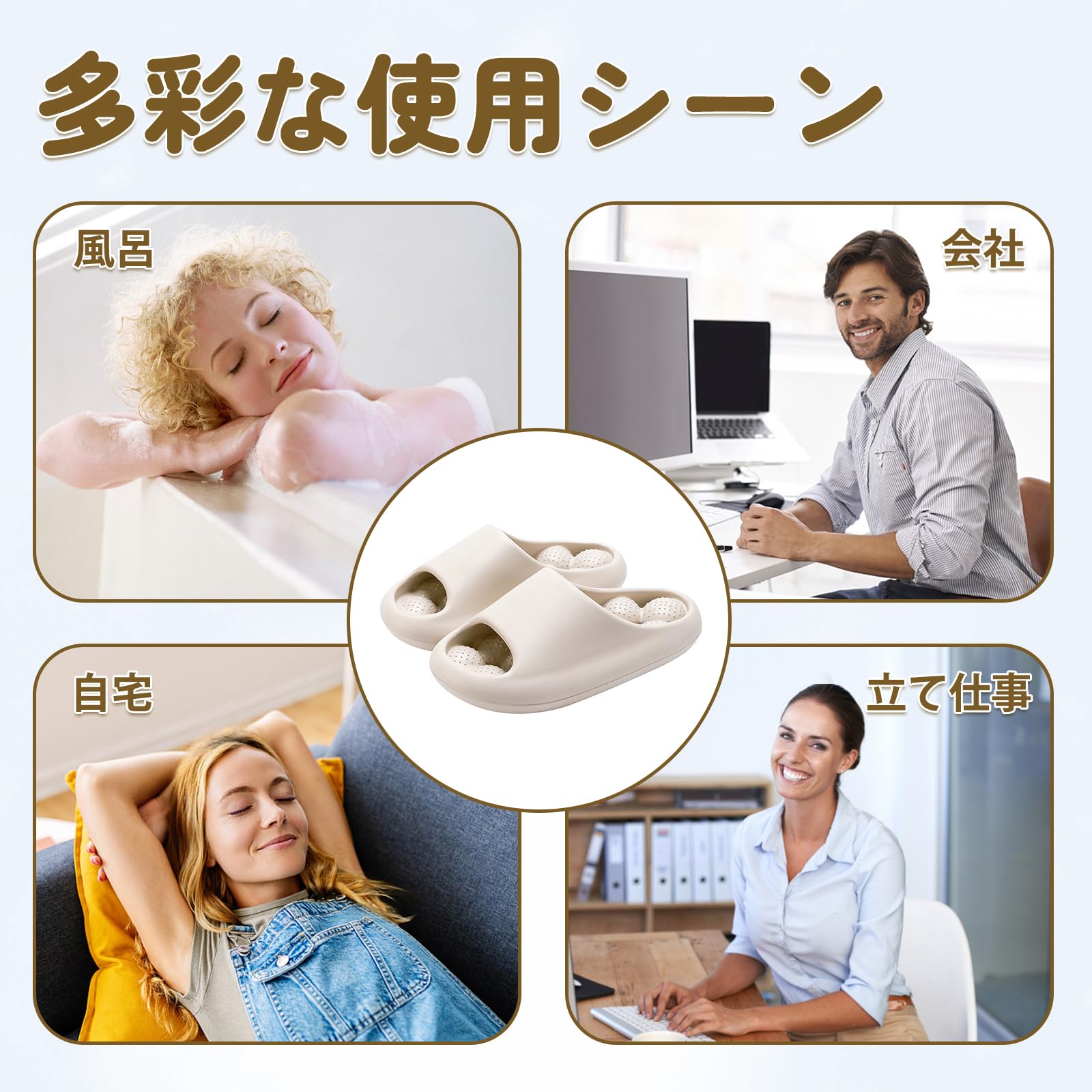 ?【体に優しい足つぼマッサー】理学療法士監修健康サンダルは足つぼマッサージ効果をもたらす設計となります。大き目のボールがソフトな素材使用し、刺激が苦手な方にも適していて、優しくじんわりと足裏のツボを刺激し、履きながら穏やかなリラックス感を持たします。「標準サイズ:37/38 | 適用足長:235/240」