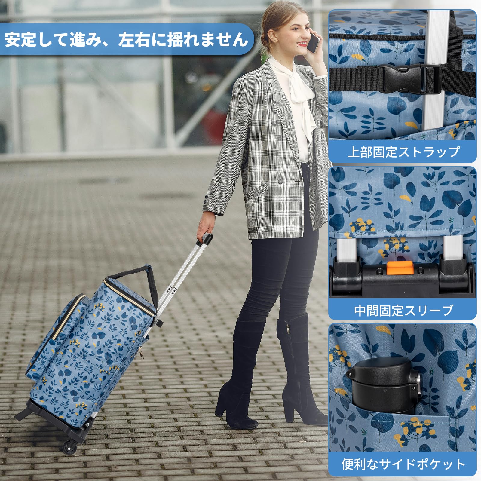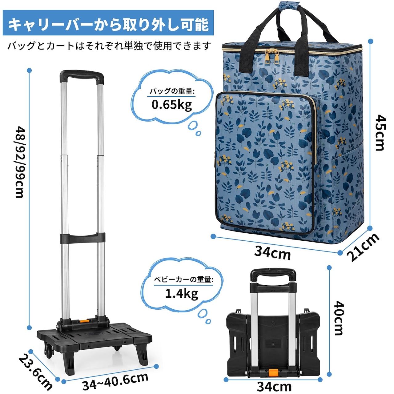 【TORIBIO】ショッピングキャリー エコバッグ 保冷バック 取り外し可能 2WAY 保温 便利 コンパクト 横押し 高齢者 2輪 (ブルー)