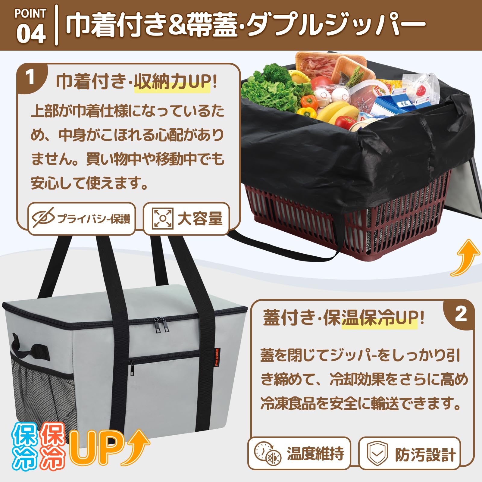 【新着】[WOOOOF WOOF] 保冷バッグ 大容量 5層断熱 エコバッグ 底板付き 買い物バッグ 巾着タイプ 買い物袋 蓋付き ファスナー付き ショッピングバッグ 取っ手付き 折りたたみ 持ち運び便利 繰り返し使える | GIGATERA