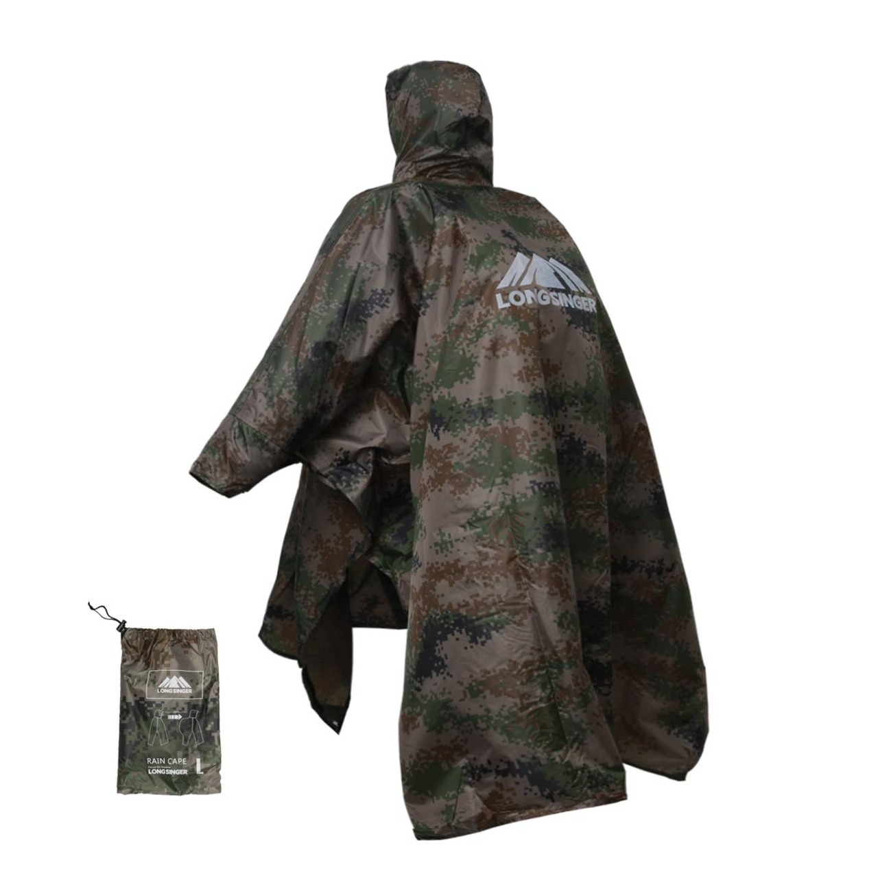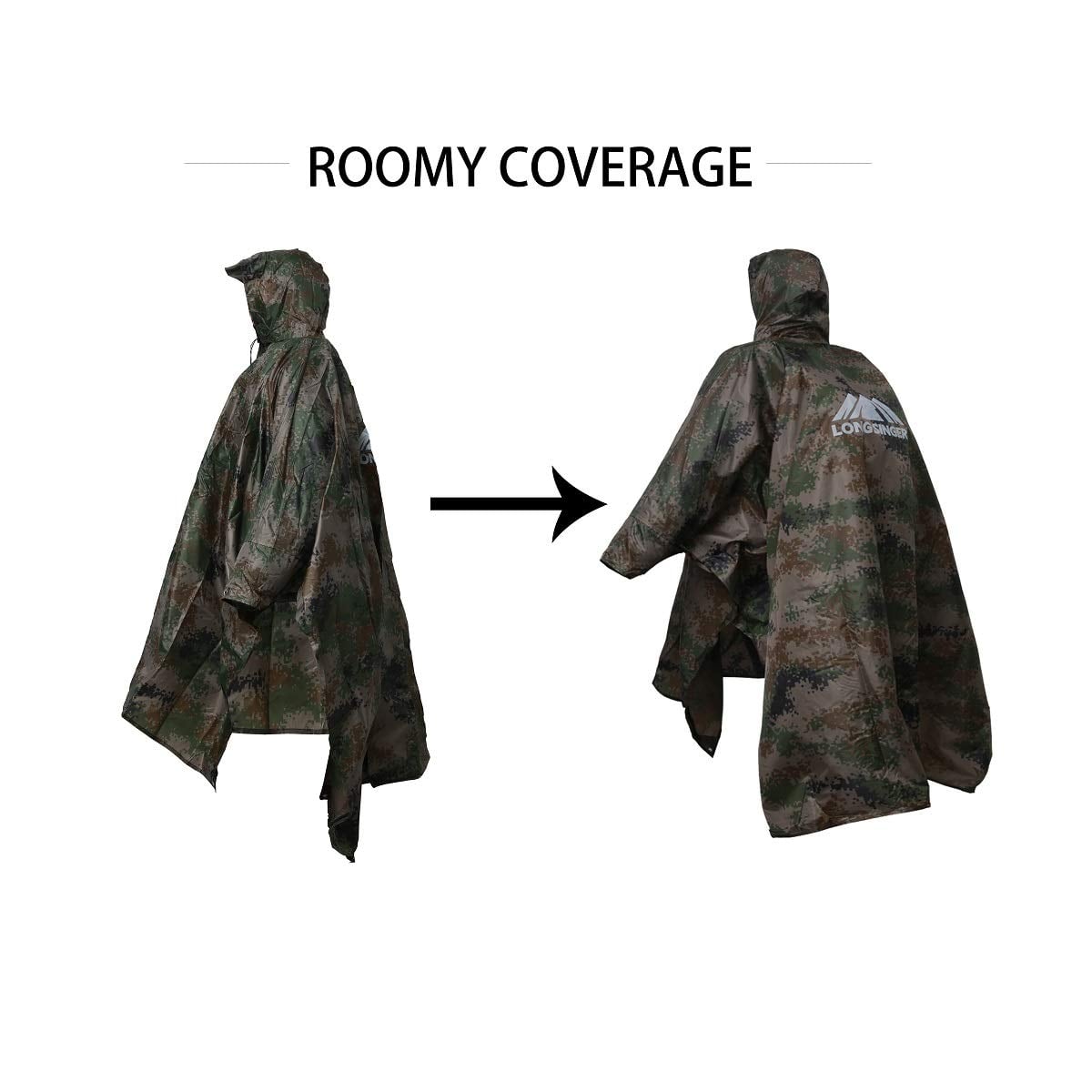 [longsinger] 防水軽量の再利用可能なレインポンチョ、多機能レインコート用の調節可能なフードとアームを備え、ハイキング、釣り、狩猟、アウトドア、クライミング、キャンプに適しており