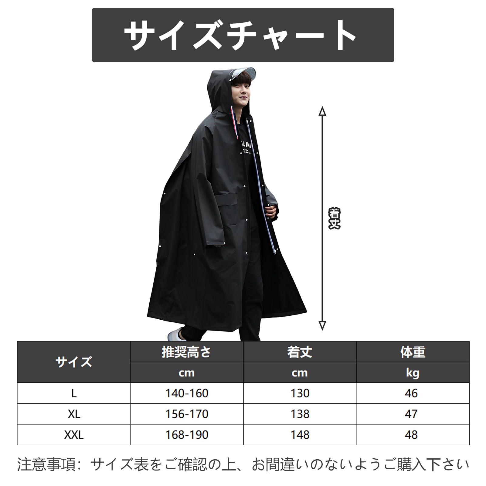 【製品仕様】メイン素材:EVA素材。カラーはブラック&ホワイト&ピンク&ブルー&オレンジ。サイズはL〜XXLです。 スタイル:シンプルモダン。サイズL:着丈130cm、適用身長: 140-160cm。サイズ XL:着丈138cm、適用身長: 156-170cm。サイズXXL:着丈148cm、適用身長: 168-190cm。詳細につきましては、左のサイズ表を参考してください。