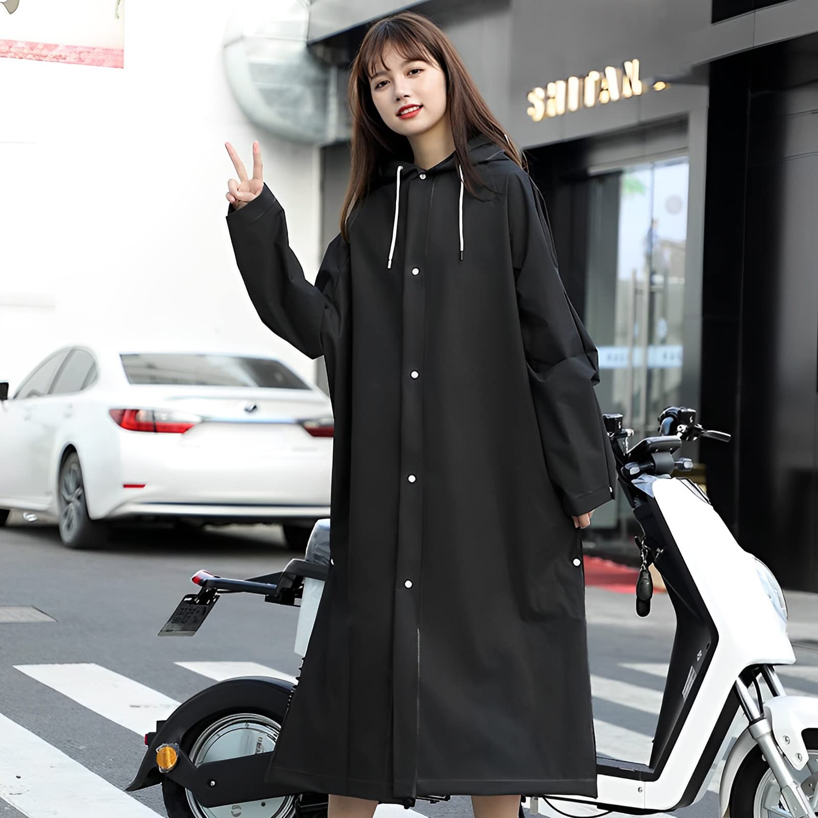 【多重防水設計】ボタン+防水ジップの設計で、雨や風の浸入を防ぎます。 折り返した袖口は、雨の染み込みを防ぎます。透明で大きな付き帽子は、雨を防ぎ、視界を妨げません。フードは頭から顔の上までフィットし、顔を雨から守ります。
