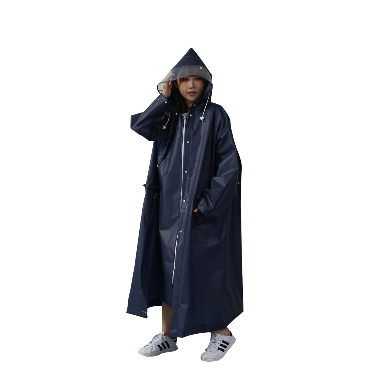 [BXINF] レインコート 二重つば ポケット2個 男女兼用 レインポンチョ ロング丈のおしれなレインウェア 梅雨対策 自転車 原付用 通勤 通学 防風防水 防塵防雪