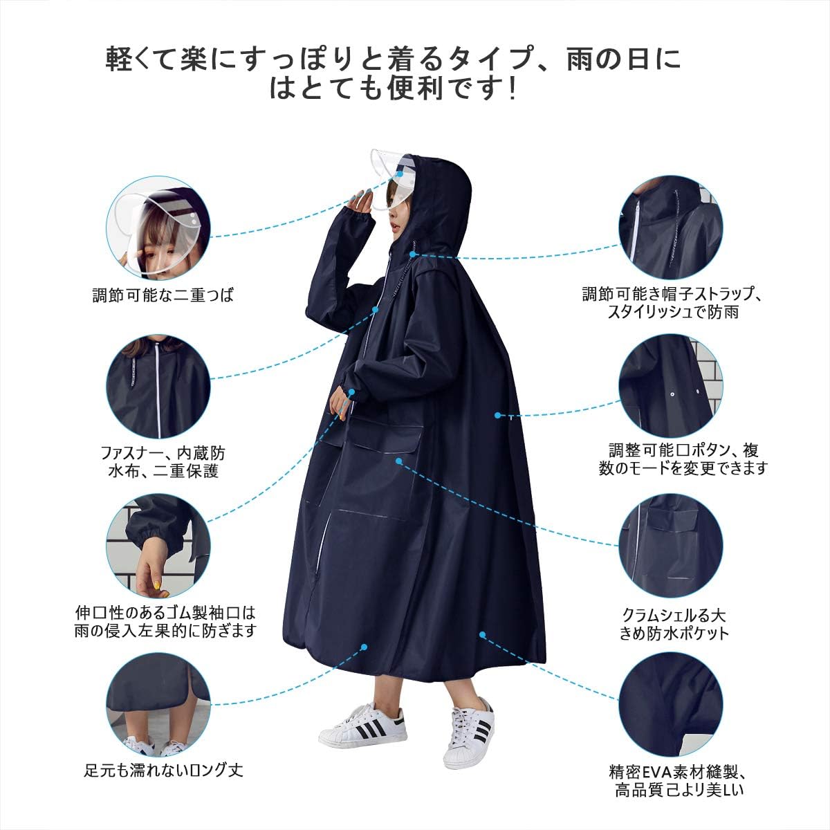 【2025全面最新版、スタイリッシュで実用的なレインコート】緊急雨具はジップカバーを採用しています。安全で着脱が簡単です。一般的な使い捨てのレインコートと違い、長時間の使用が可能です。新しいデザインの概念、美しいファッションです。製品設計、防水、防風、通気、実用性、適合性が全面的にアップグレードしました。3重防水加工もあり、レインコートとしての性能もばっちりです!折りたたむことができ、コンパクトなので、ランドセル/お店/オフィス、車の中など、急な雨が降ったときに使うことができます。