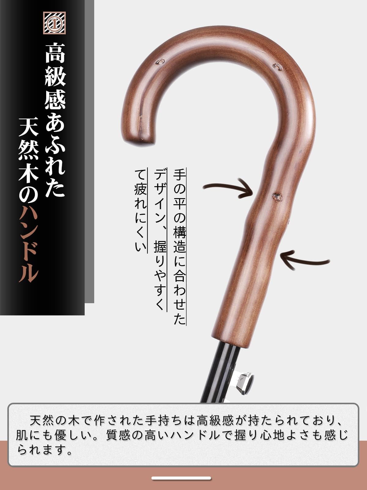 【天然木のハンドル】ビジネス時からカジュアルな服装にも合わせやすいデザインです。天然の木で作された手元は高級感が持たられています。そして、グリーンな木材なので環境に優しい。質感の高いハンドルで握り心地よさも感じられます。