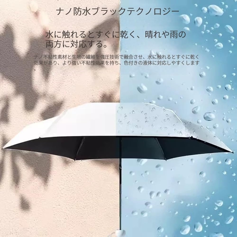 晴雨兼用:この折りたたみ傘は高密度防水素材を採用し、超撥水テフロン加工が施され、通常の折りたたみ日傘よりも優れた防水機能、軽く振るだけで雨が玉のように一気に落ちるので、他の人の邪魔になることもありません。雨の日も、晴れの日も兼用でご利用頂けます。