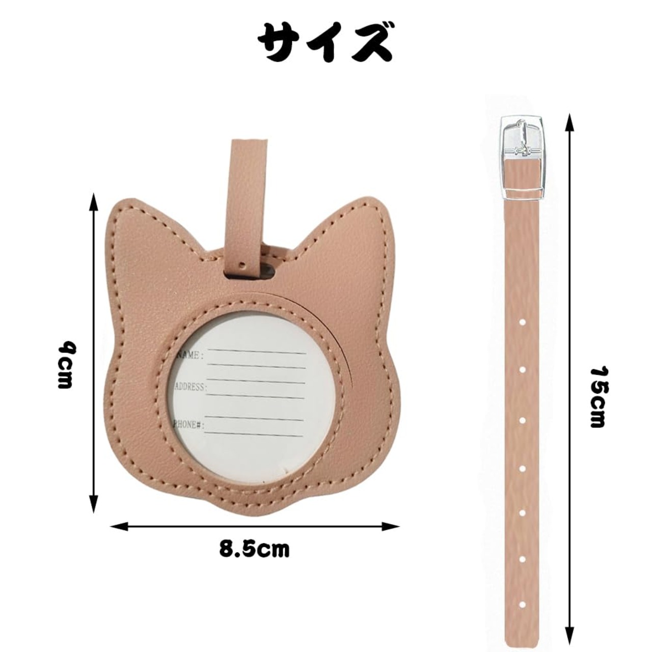 LOYELEY 猫 ネームタグ バッグタグ 荷物タグ スーツケースタグ PUレザー 可愛い 軽量 柔軟 耐用 取り外し簡単 旅行タグ 紛失防止 お子様バッグ/スーツケース/スポーツバッグ 通用 旅行 出張用 (ピンク)