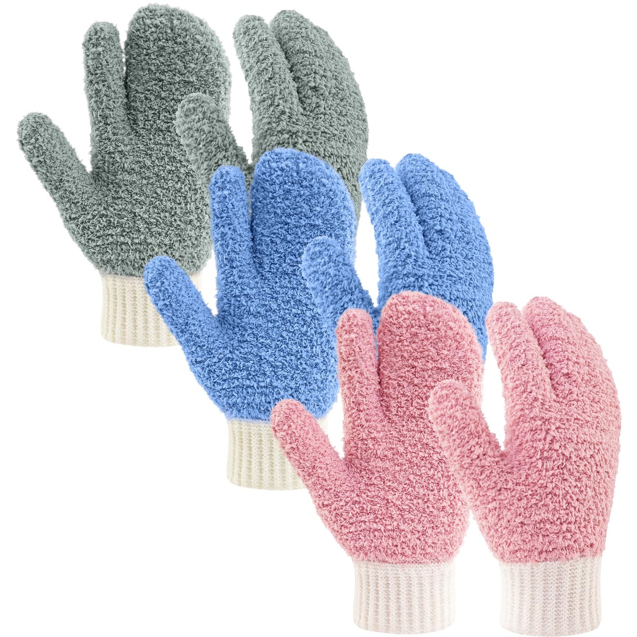 夢の物 6枚セット マイクロファイバー掃除手袋 多用途 ブラインド掃除用 ホコリ取り 窓サッシ エアコン 掃除道具 部屋掃除 フリーサイズ (3, 3色組)