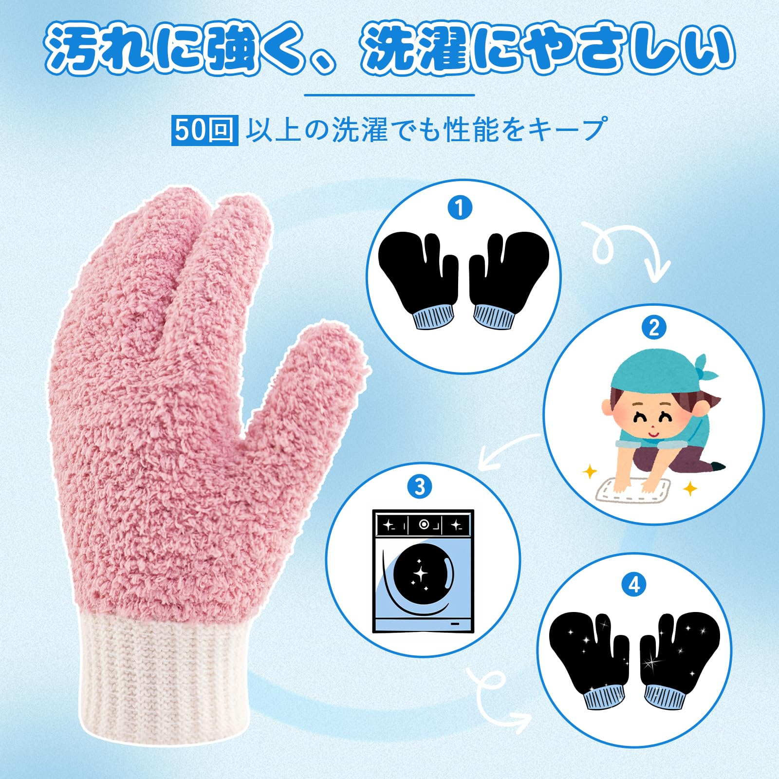 ??【年末年始の大掃除に活躍】軽くてふわふわして可愛いの5本指手袋で、手と一体となってお掃除らくらく。指先まで使えるから細かい気になるところまでお掃除できます。