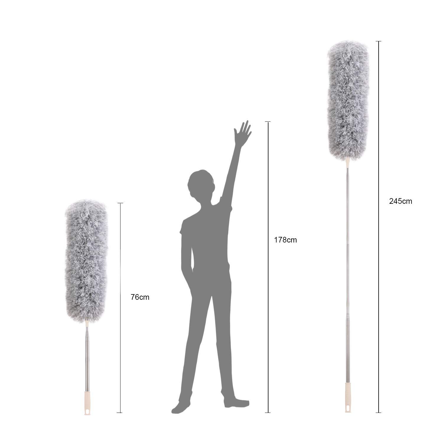 Cleanhome ホコリ取り ほこりとり はたき ハンディモップ 伸縮可能 高い所掃除 250cmまで伸縮 手洗い可能 曲がる可能 天井/車/家/ブラインド/エアコンに適用 (グレー)