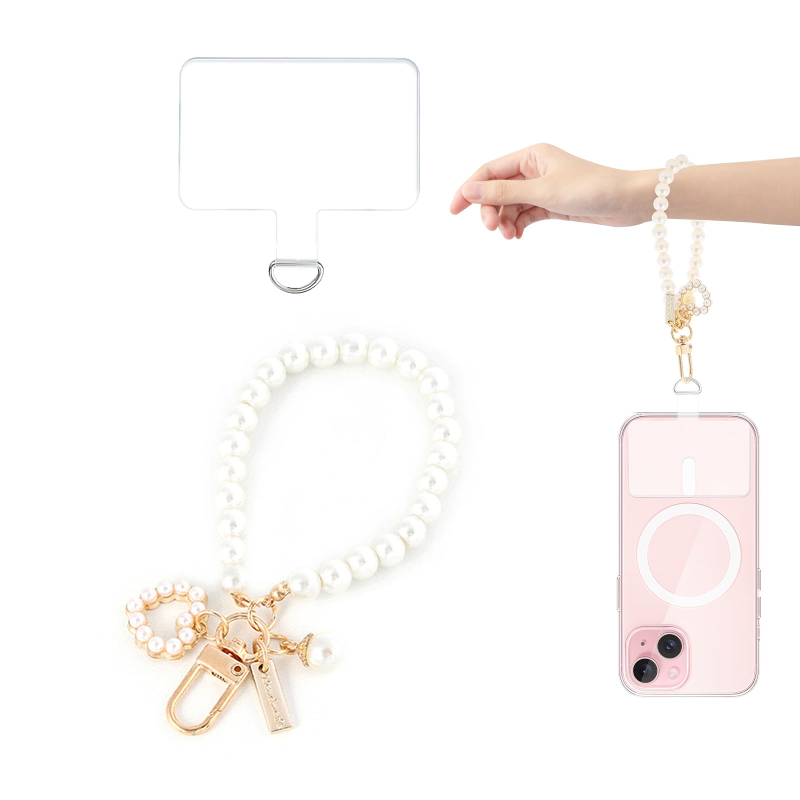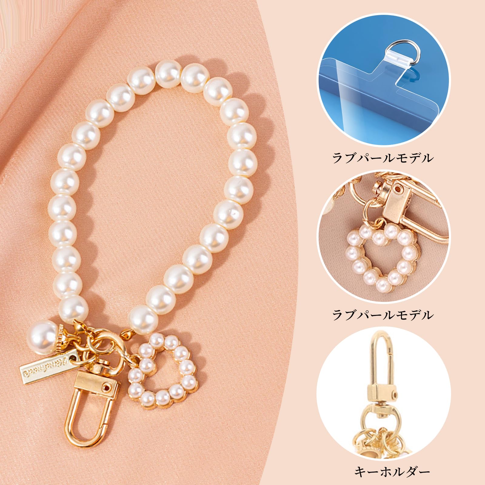 【セール】[Liroyal] スマホストラップ パールチェーン 【金属製D字バックル】 リストストラップ ハンドストラップ 携帯電話のブレスレット 着脱簡単 紛失?忘れ物防止 10G荷重量 丈夫 全機種対応 | GIGATERA
