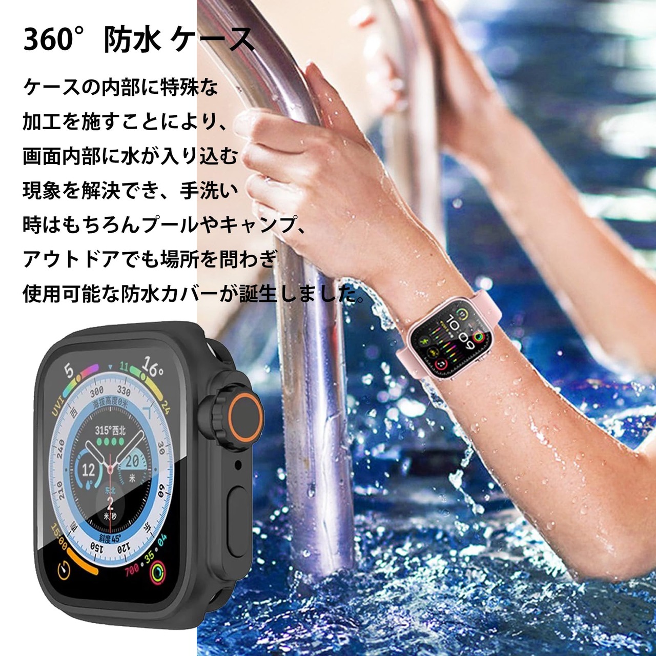 【360ど度 防水設計】Apple Watch バーまでの保護ケースを基に改良し、防水機能が向上しました、Apple Watch ケース特殊加工による360ど度 防水設計により、 手を洗う時はもちろん汗をかいた時、シャワーを浴びた時にもかかわらずにアップルウォッチをご使用できます。