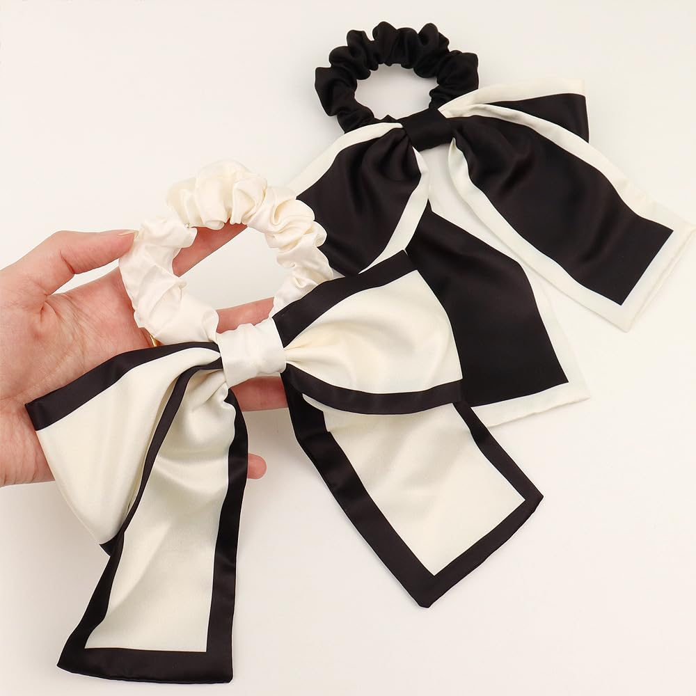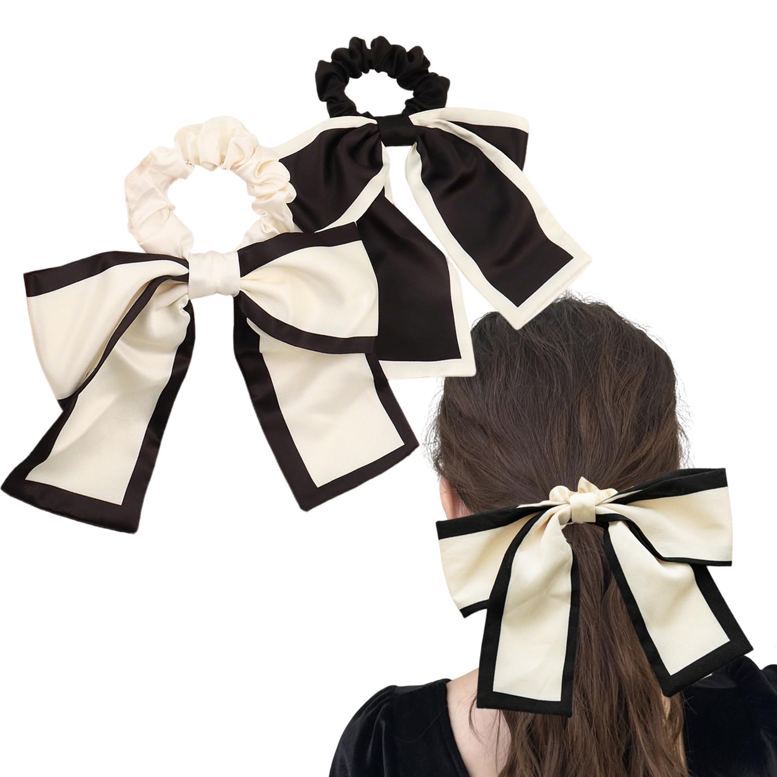 shefun リボン シュシュ シルク ヘアゴム 大人2個セット おしゃれ 髪ゴム リボン ヘアアクセ レディース リボンシュシュ 髪飾り JP224 (color3-bwknot)