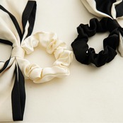 【上品】シックな色合いで艶感が綺麗な印象。定番のシュシュも女性らしい光沢のあるシルク生地で、ぐっとエレガントな印象に。