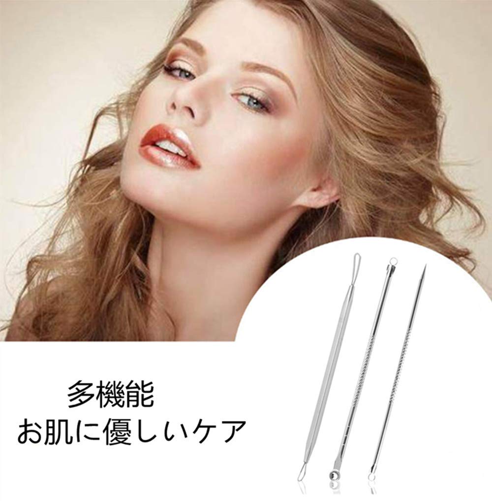 LIKENNY ニキビ針専用キット 3本セット 黒ずみ取り 角栓プッシャー ステンレス製 毛穴ケア専用キット 美容ツール 美容用品