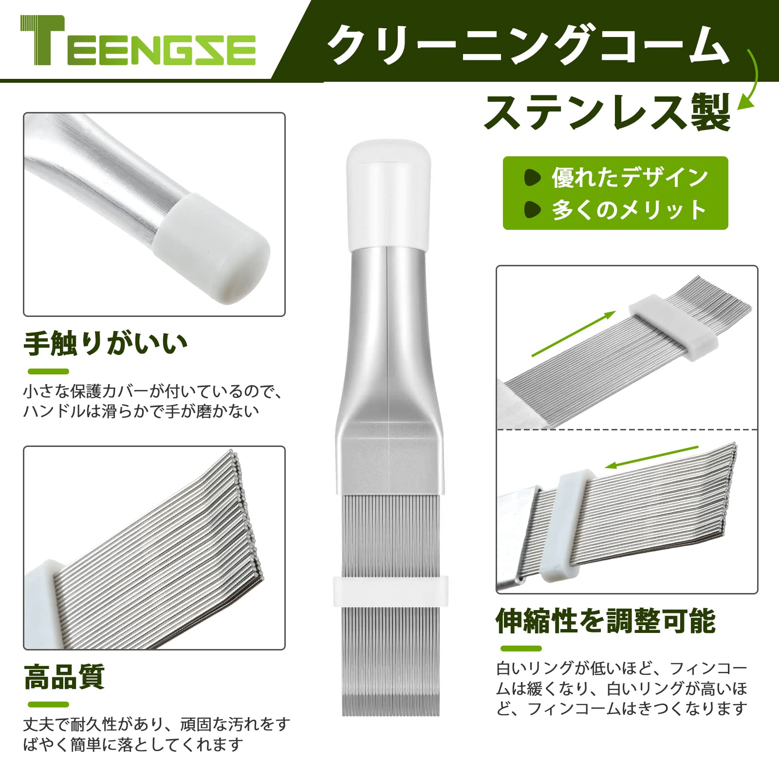 【さまざまな組み合わせ】:さまざまなクリーニングのニーズに対応します。 ?ステンレス製クリーニングコームは実用的で、耐摩耗性、防錆性と耐久性があります。?プラスチック製なフィンストレートナーコームはコイルを傷つけることなくコンデンサーフィンやコイルを清潔に保ちます。 ?2つの異なるブラシ:大きなブラシは広い領域をすばやくきれいにし、青い折りたたみブラシは細部をきれいにすることができます。